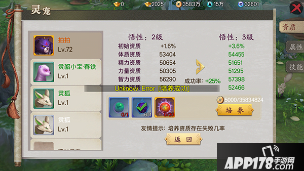 3,洗炼好后,用悟性丹,突破丹或元魂石来提升灵宠的悟性可增加资质和成长数值。