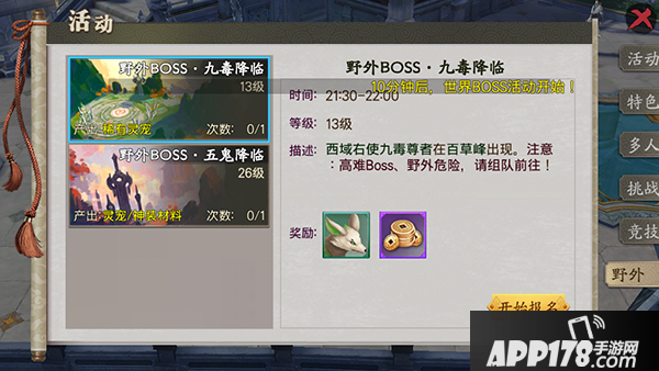 2,击杀野外boss西域右使九毒尊者,产出稀有灵宠变异灵狐。击杀野外boss西域左使五鬼天王产出变异青鸟。