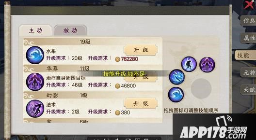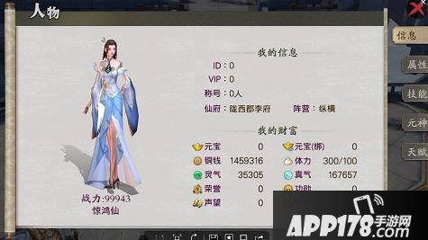 在蜀山战纪中,少侠可以点击人物按钮,查看其信息、属性、技能、元神和天赋。
