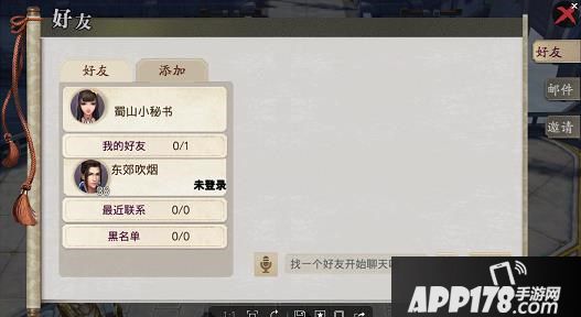好友栏的最上面,是和蔼亲切的蜀山小秘书,她可以回答少侠在游戏里的疑惑,帮助少侠走出难关,可要与她多多交流哦。