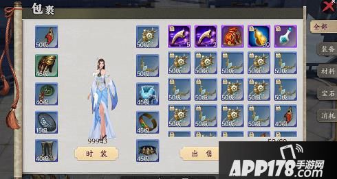 在包裹中,剑侠可以轻松查看自己所拥有的物品,并可以使用、出售和分解,更贴心的提供了分类查看功能,让您对自己所拥有的道具一目了然。第一栏显示紫色的道具代表珍贵的装备用品。
