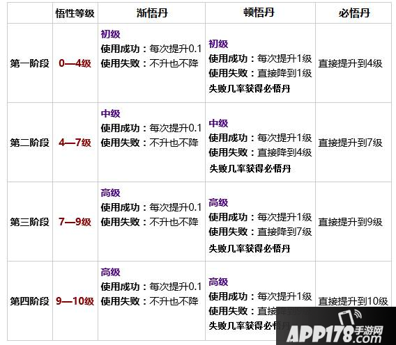 悟性等级总共是10级,10级是满级。不同等级所使用的培养道具也是不同的。