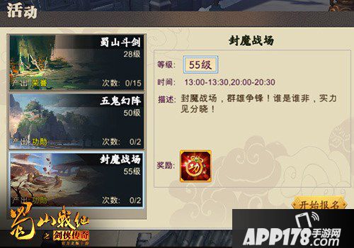 各位剑仙可在等级达到50级以后,通过活动面板报名参加,开放时间是每天13:00--13:30、20:00—20:30两次,每次10分钟。整个战斗过程可谓血脉喷张,瞬息万变。个人战力与装备的差距已经不是左右战局的决定因素,团队配合、战术打法才是考虑的重点。