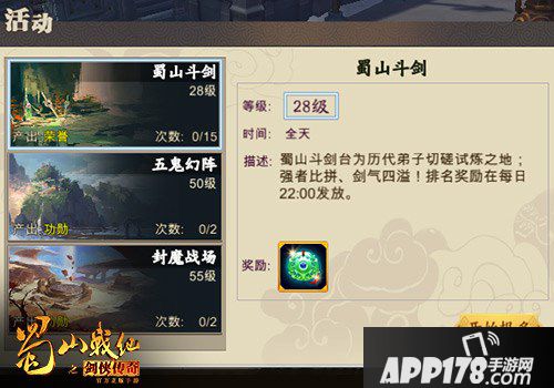 “蜀山剑气凌云霄,斗破苍穹兼天下”。蜀山斗剑是各路英雄豪杰一展身手的好地方,也是目前PVP的主要玩法。玩家等级达到28级便可进入在线竞技场进行1V1的真实在线PK,胜利者可以获得荣誉和积分、提升段位,挑战更强的对手,连胜还有世界公告哦!竞技获得的荣誉值可以用来兑换橙装,战力提升非常明显!