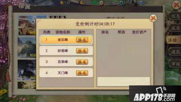 每个战场只有竞价前两名的帮派可以进入,因此需要随时掌握其他帮派的竞价资产动向;