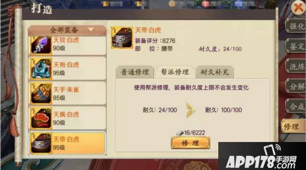 建筑等级越高可修理装备等级越高,使用装备修理可以不降低耐久度上限。