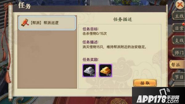 加入帮派可接取帮派任务,每天完成10个,可以获得大量帮贡并为帮派提供相应帮派资产。