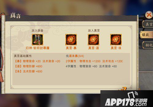装备真言可谓是实力的象征,要想你的装备获得真言加持,需要满足80级以上的等级需求,此时即可通过在装备上镶嵌真言石以获得单字真言的属性加成了。当然,一字真言所附加的属性固然客观,但是若可将单字真言收集成句并附于套装之上,则可激活更加强大且稀有的属性。
