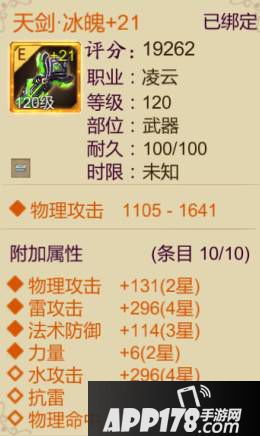 以120凌云武器为例,不同职业武器攻击区间不同。