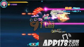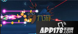 第二波小怪,很普通的散弹,稍微扭一扭就能过去了(PS:如果道具在屏幕上半部分请等怪出来了在去尝试接,因为这波怪是从上方后面出现的,可能蹭掉血和破坏连击,减少达到三星的概率)