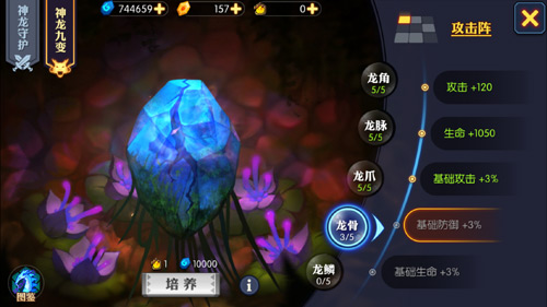 随着神龙等级的提升,将开放神龙守护技能。神龙守护技能容易被忽略,利用黄玉牌对相应属性进行提升,可以给伙伴提供属性加成。神龙等级越高,可以升级的技能数量越多哦,所以需要先培养好神龙,多多开放守护技能数量。