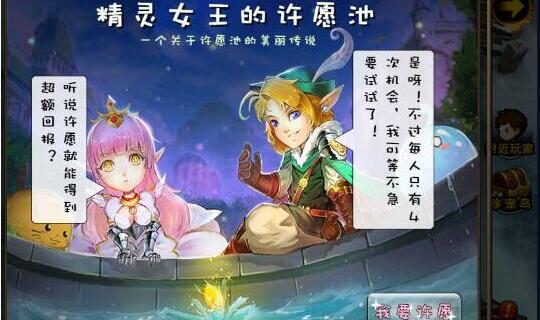 在活动中,每位玩家可以许愿四次,从而获得翻倍的奖励,为啥只有四次呢?因为这是纯粹的福利活动,再说女王可不喜欢那些贪得无厌的孩纸哦~
