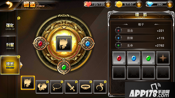 通过时光秘境获得的宝石,可以镶嵌到装备上,从而提高装备属性。并且可以使用三个低级宝石,合成为一个更高级的宝石。目前宝石分别为生命、攻击和防御宝石,可提升装备相应的属性。