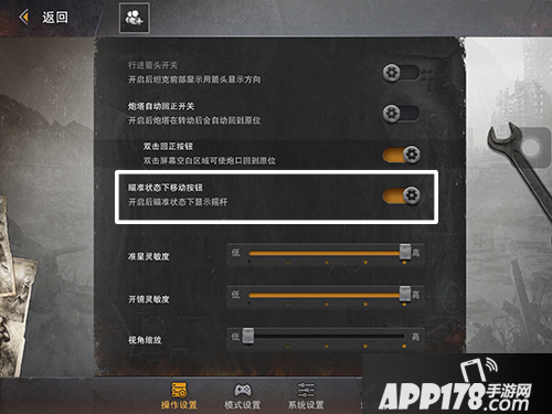 很多朋友反应在打开瞄准镜之后坦克本身是无法移动的,这样就不利于更好的回避敌人攻击。其实这个问题开发人员早就想到了,只要在游戏设置里勾选这个选项就好,这样在瞄准状态下依然可以移动坦克。