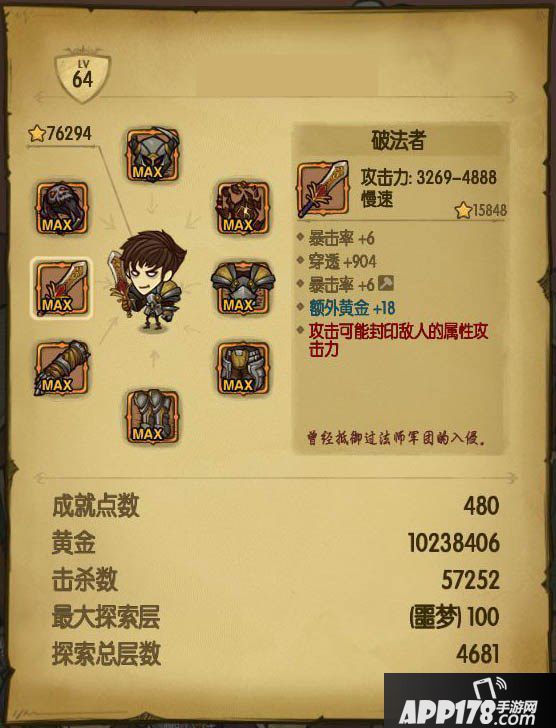 《贪婪洞窟》中只有武器装备的固定属性是攻击力,攻击力的表示方式为“攻击力:最小攻击—最大攻击”。噩梦模式顶装武器“破法者”强化到MAX该数值约为“3000—4500”。最小攻击和最大攻击之间相差1500点伤害,约为最大伤害的三分之一,最小攻击的二分之一,这个差距相当大。“破法者”为慢速武器,攻击频率很低的情况下,我们可以在装备属性上堆“最小攻击力”数值。噩梦顶装强化到MAX,最小攻击力属性数值大于500,在不堆“最大攻击力”数值的情况下,随便堆两到三条“最小攻击力”数值即可使人物攻击的最小攻击力与最大攻击力很接近,使人物的每次输出伤害成为一个接近最大攻击力的值。