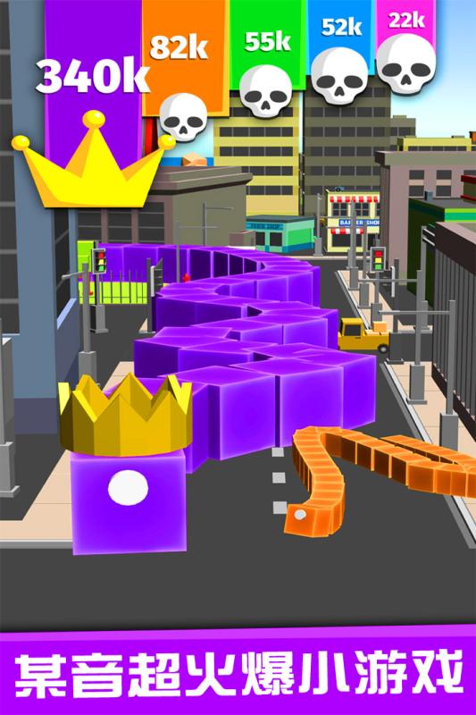好嗨哟,我要做这条街上最靓的蛇仔,蛇蛇争霸,盘起来!结合当下流行火爆黑洞大作战拥挤城市贪吃蛇大作战的玩法,全新打造好玩新颖的游戏体验,采用了色彩斑斓的块状风格,滚动的天空城市下画面相当华丽,视觉冲击力很强,而且玩法一定会超出你的想象。在场景中寻物体进行包围来增长自己的身体,物体越大,需要的身体就越长,所有你需要从最小的开始,玩家之间不会相互碰撞,所以你的目的就只有一个,通过长度来战胜它们。