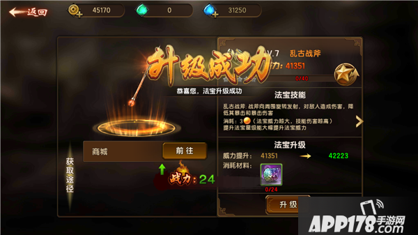 法宝可以通过五色神铁来进行升级,升级后法宝技能效果将会有非常大的提升哦。