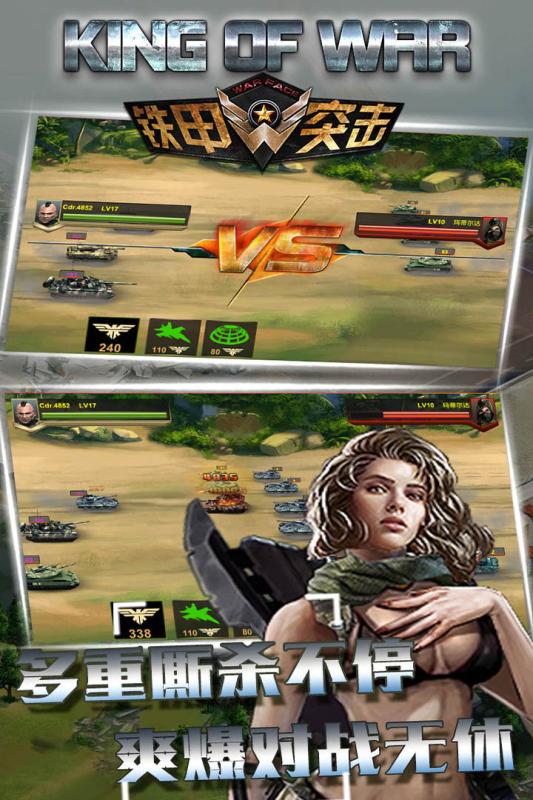 《铁甲突击》是一款历时3年匠心打造军事策略手游,结合现代军事科技发展趋势,为您呈现瞬息万变的海陆空立体化未来战争场面。全新战争概念融合互动社交,合纵连横,多维度发展路线,凸显策略玩法新高度。 只需三分钟,你将会和我一样爱上这款游戏,来吧兄弟,一起去征战这个战火燎原的世界吧! 开发者:广州赢赢信息科技有限公司