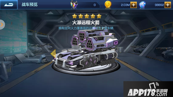 玩法简介:定向弹幕型远程火炮,每次发射24枚火箭,分两排分布,每排12发,可指定发射方向,在狭窄地形或者可预测敌军移动方向时有奇效,但基础射程较短,限制了视野范围;