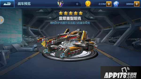 玩法简介:进攻型重型车辆,攻击属性较高,但防御和血量相对较低,普通炮弹可触发热能效果,堆叠三层热能效果可造成额外的伤害;
