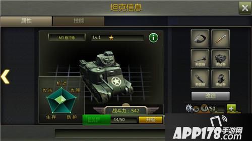 获得坦克以后,就是常见的卡牌养成玩法,玩家可以对坦克进行升星、改造和升级等等,然而最终决定坦克能力的依然是坦克品质,上图坦克图片左下角的字母(C、B、A、S),玩惯了卡牌养成的小编还是觉得有点遗憾,不过仔细想想,如果老式的坦克还能打赢新型坦克,那才不合理吧。