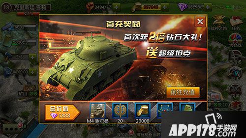 游戏的CG加载界面就动感十足,好似大战一触即发,仿佛置身于恢弘的战场上,有一种看欧美大片的感觉,游戏内的主城也是真实感十足:军营、坦克营、统帅部、靶场,以及延伸到远方的广阔原野… …放佛自己独立于一个烽火硝烟的战斗要塞。
