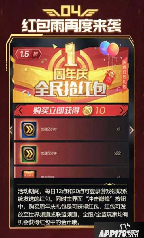 本次周年庆典还有【集盟军宝箱】和【整点红包雨】活动,奖品丰厚,福利满满!最引人注目的是【瓜分2亿金币】活动,究竟谁是最后的大赢家?让我们拭目以待!