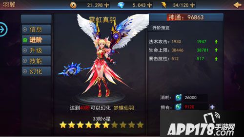 而进行“升级”操作则需要消耗“羽翼升级晶石”,升级亦能提升羽翼整体属性,“羽翼升级晶石”可通过羽翼副本、宝箱、boss副本等途径获取。