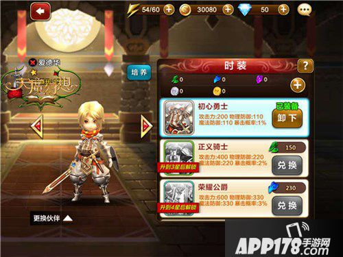 6.更换时装。时装带来的不仅仅是外型的改变,还有属性的提升与战斗力的增加。这在时装展示中即可直观看到。想要穿戴更高级的时装就要努力实现伙伴升星以及时装碎片、特殊时装币的搜集。
