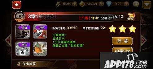 首先我们先来了解精英3-1的基本内容。玩家成功闯关后将会得到系统赠送的奶酪、明亮的神纹、古朴的神纹、公主聊饮食、暗影水晶、丝绸,可以说奖励不可谓不丰厚;本关三星完美通关的条件是完成关卡、150秒以内通关,配置公主技时空幻境,同时对于战力要求达到了93510,玩家等级达到22级,因而此关对于战力是有一定要求的。