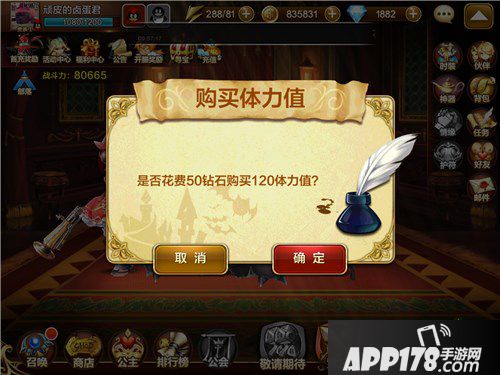 3.购买体力值:万花只需花费50钻石就能购买到120体力值。