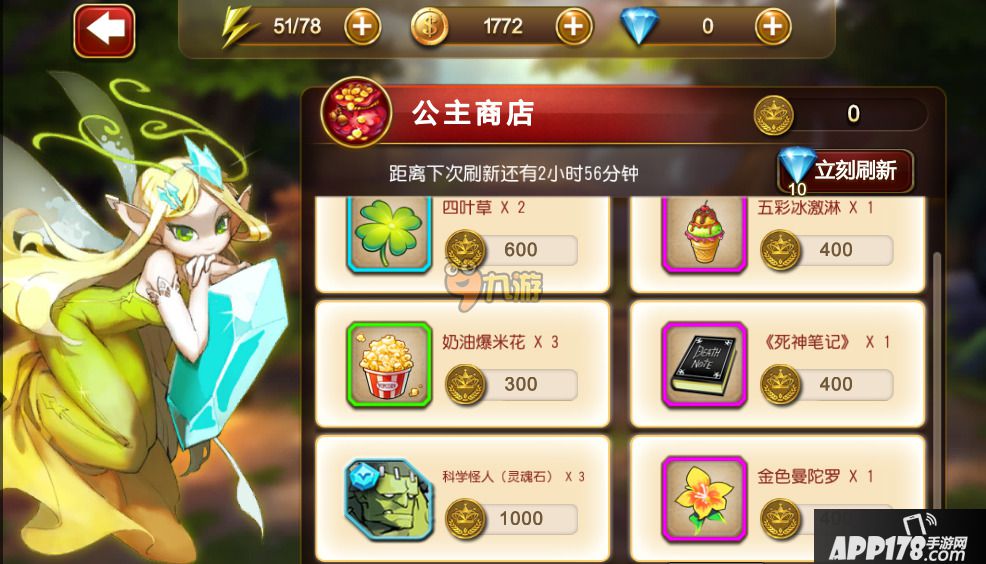 【公主商店】里贩卖的都是好东西——稀有伙伴的灵魂石、中高级材料、公主礼物......稀有道具应有尽有。收集足够多的童话币,是获得这些珍贵道具的唯一途径