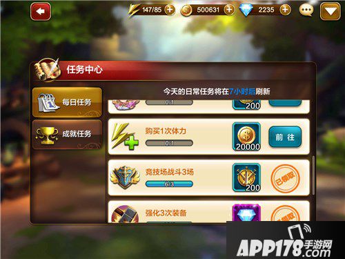 竞技场战斗3次:在竞技场中比赛三次,不论输赢即可完成,可获竞技奖牌。