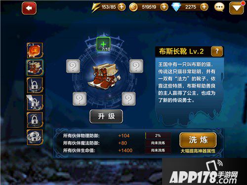 神器的作用是增益所有角色属性的,游戏中拥有:巨龙鳞片、布斯长靴、狮心勇气等,分别对所有玩家增加:攻击力、生命值、物理防御、暴击概率等属性增益。神器开启后,需要使用各种道具对其神器进行升级,随着等级的不断上升,角色所获得的属性增益就越高。同时,也会从最初的一种道具升级到需要借助多种道具升级了。记住拥有神器,神器需要激活才可在战斗中生效。