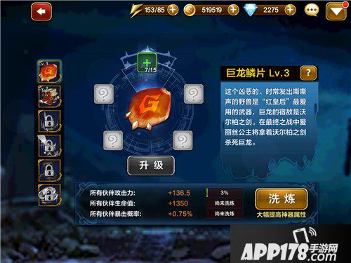 神器系统的属性增益就是这样的直白,不过其中材料的消耗巨大的,所以玩家一定要好好手机材料,升级洗练神器,提升所有角色的战斗力,让自己的团队变得更加强大!