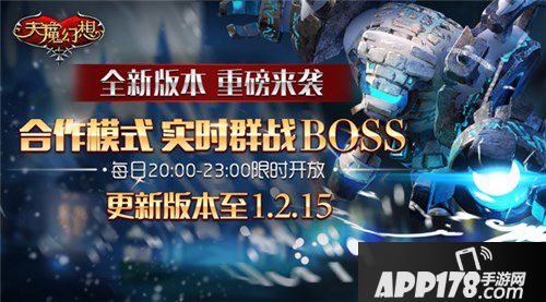 《天魔幻想》合作玩法现已正式上线,玩家更新游戏,并通关普通冒险5-8后,即可与伙伴们一同挑战刺激有趣的“征服BOSS”战斗。更有丰厚钻石、金币和复活币奖励等待大家!