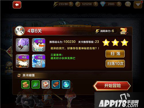 是在冒险模式(精英、普通)三星通关的前提下,可进行扫荡。扫荡后可直接获得经验。建议:玩家在遇见瓶颈期时在扫荡,通过扫荡后获得的道具,对角色或武器进行升级。