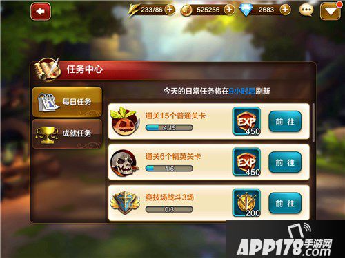 在任务心中里每日24点都会重置一次所有任务,奖励为玩家经验值的4个任务,全部完成等于1500经验值,玩家只需要按照任务上的要求前往任务并完成后即可领取。其中包括几个玩法或战斗本身完成后即可获得经验的任务。建议玩家每天必来完成,在本来非常丰厚的经验奖励下获取更多经验。