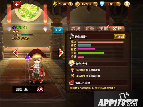 梅林:是一名魔法攻击型小伙伴,作为组合中的魔法输出担当,拥有强力的魔术输出和暴击伤害。通过技能点的提升在保证巨大伤害的同时还能有效的提高自己的暴击概率。不论是搭配输出角色、恢复性角色还是魔法输出角色都非常适合。