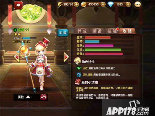 阿拉丁:技能的拥有持续回复效果,尤其是用在推图上,可以减少许多过量治疗,五秒的回复效果更使第一个技能的长冷却时间变相的减少,使治疗中断时间缩短,后续的蓝色品质带来的被动全队加攻速,为集气增添了不少效率。