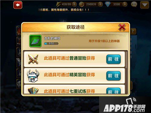 通过关卡或精英关卡都可以获得不同品质的神纹,普通冒险和精英关卡的对神纹的收集速度,前期并没什么其他影响,就冒险玩法就可什么神器。后期,随着神纹的消耗需求越来越来,主要还是得靠七重试炼获取。