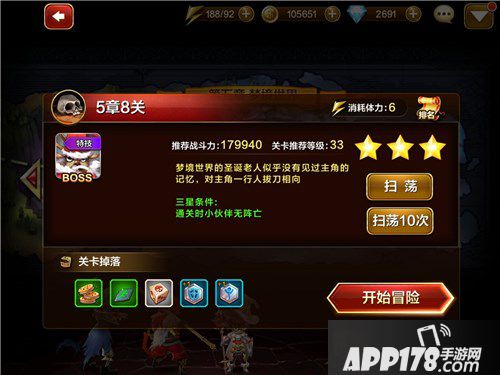在普通关卡5—8中,我们将迎战圣诞老人以为英雄,关卡产出饼干、古朴的神纹、骨质骰子、不屈印记+1和魔能印记+1,分别可以用于伙伴升级、神器升级、伙伴进阶等方面。