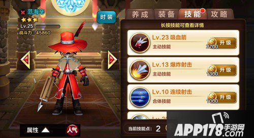 主加吸血箭,伤害最高技能且附带吸血,绝对是首选。其次是狩猎追踪、邪恶捕杀,前者增加穿透,打防御型怪会很好用;后者增加攻击力,对于输出来说这肯定也是必须的。速射可以晚点考虑,因为要突破解锁。爆炸射击,个人觉得不必考虑,如果你技能点实在多,就无妨。至于合体技能,首先要明确一点的是一个阵容里谁比较适合当主体,由于本人选择小悟空当主体,范海辛的就不作考虑了。