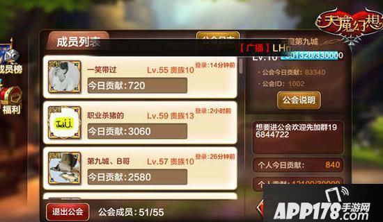 而成员榜则给管理和成员一个更直白的比较标准,同时也是一个交友平台,方便公会内成员增进了解,互加好友!