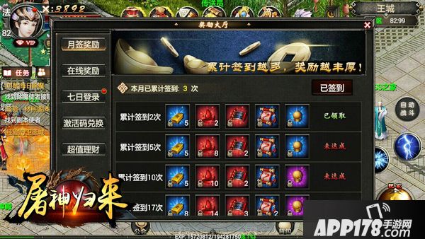 在线奖励:游戏一定时间后,要记得领取在线奖励