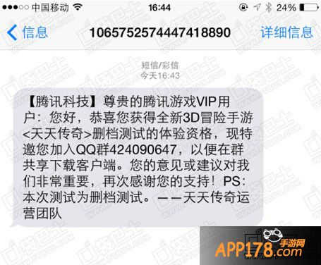 正在小编思考天天传奇填写问卷调查获得内测资格的概率是多少呢,同事已经眼疾手快一马当先填了一份。当我们商量着万一能别抽到资格是不是要把全部家底拿去买彩票的时候,同事突然告诉我,我有资格啦!码都发过来啦!有图为证
