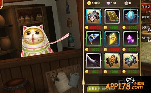 杂货铺每天会自动刷新4次;物品随机档次不一,全看喵先生的心情哟;所有商品只要使用金币就可以购买。