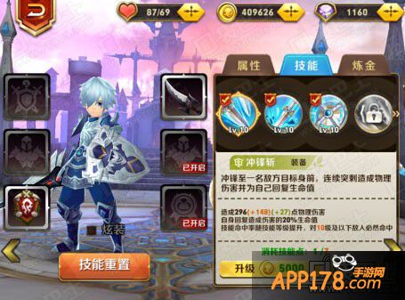 战士拥有冲锋斩、英勇护盾、轰天刃、挑衅、旋空斩、正义审判六大技能。释放技能时,华丽的特效和生动的招式都十分流畅。冲锋斩、轰天刃以纯粹的伤害为主,前者给单体造成多段伤害,后者能够实现范围性的群体攻击。后期的旋空斩与正义审判,在给敌方带去伤害的同时还附加了沉默、无视任何防御的特殊效果。辅助作用的英勇护盾可为战士减少受到的伤害,挑衅则是嘲讽全体敌人,吸引火力,同时削弱敌方的物理护甲。