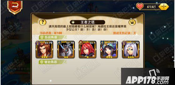 王者之塔,共100层,玩友们等级达到20级,即可进入王者之塔。