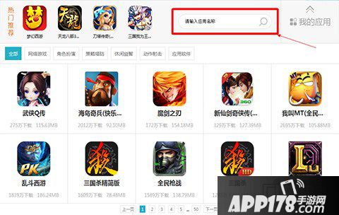 2.在搜索框搜索自己喜欢的手游进行下载